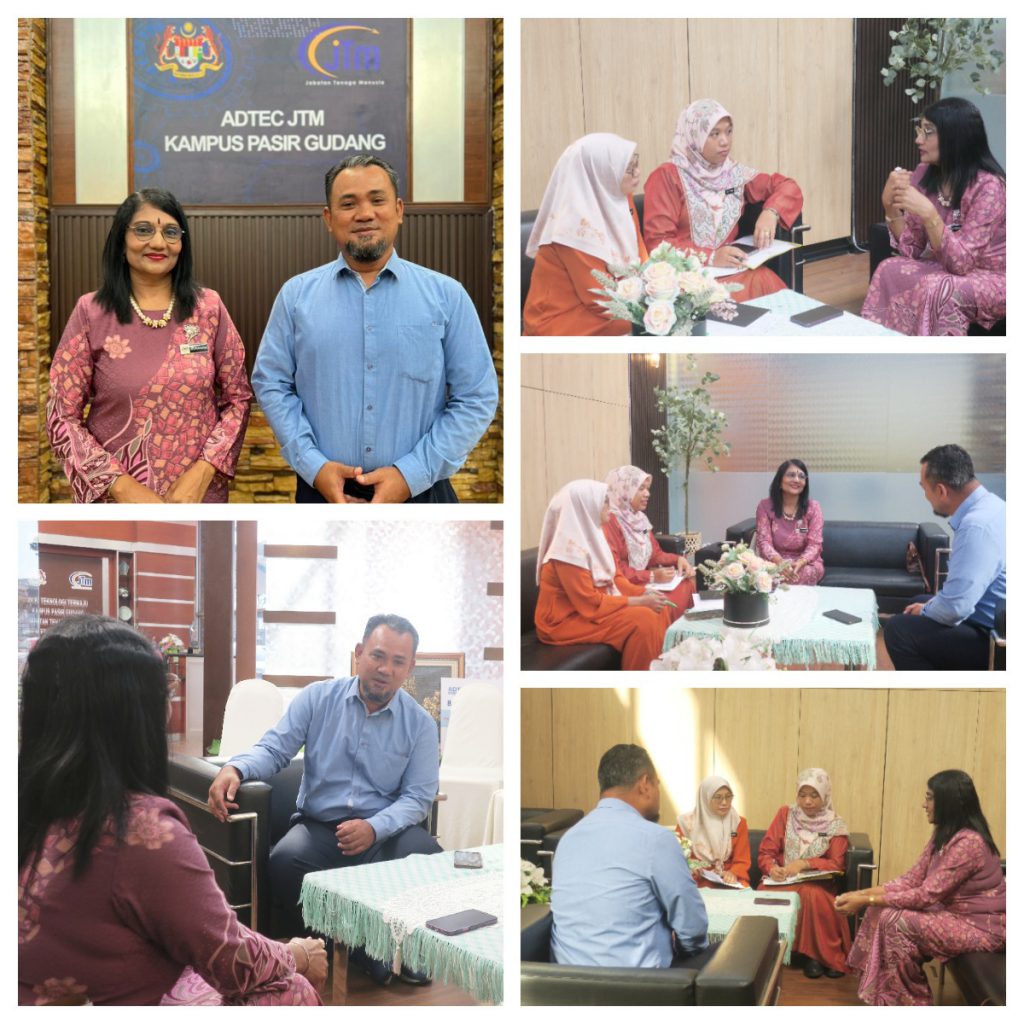 Pengetua SMK Taman Megah Ria, Puan Soranam a/p Karupayah telah hadir ke ADTEC JTM Kampus Pasir Gudang bersama guru Penyelaras Jaringan dan Jalinan Sekolah, Puan Nurul Eliyana Binti Mohd Yazed. Ketibaan mereka telah disambut mesra oleh tuan pengarah kampus, Ts Dr Hj Azli Amin bin Ahmad Raus bersama pegawai dari unit CESS pada Jumaat 14 November 2025.
