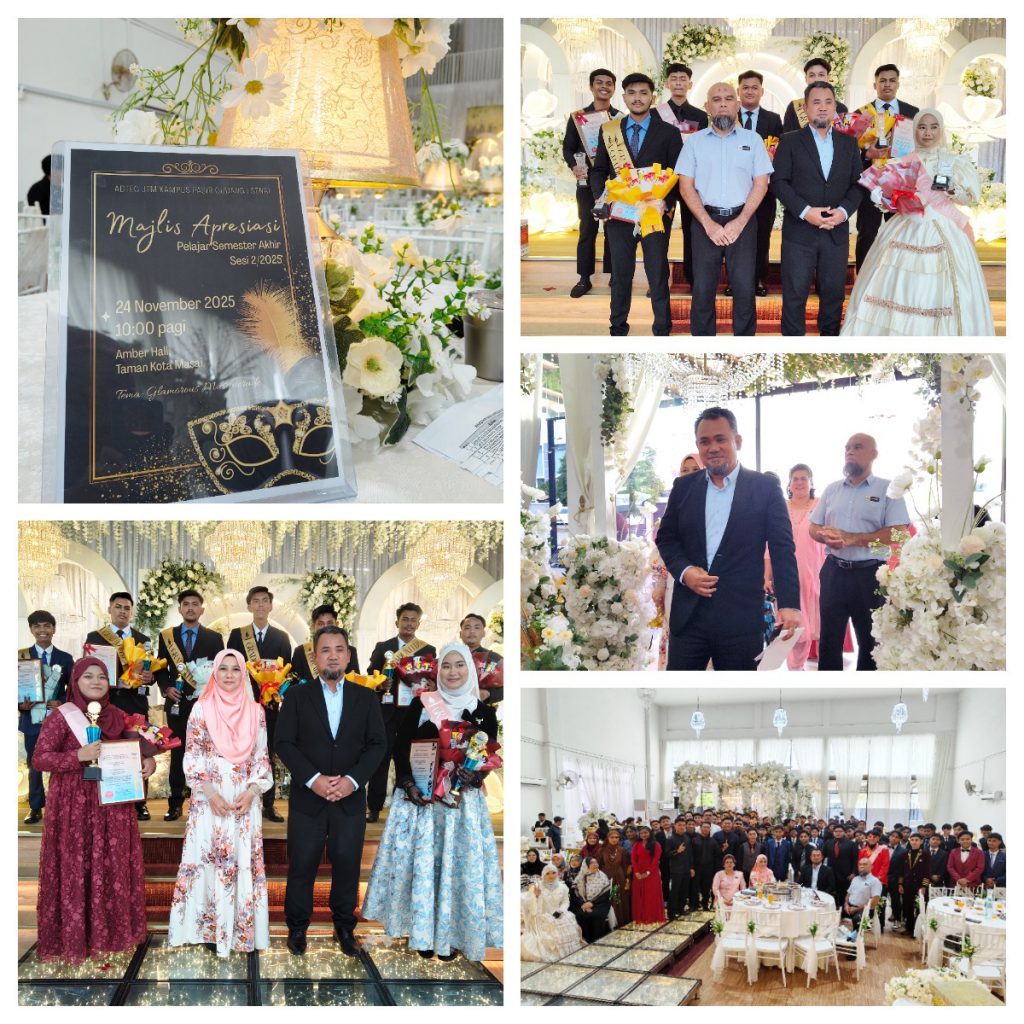24 November – Majlis Apresiasi Pelajar Semester Akhir Sesi 2/2025 telah berlangsung dengan penuh meriah dan bermakna di Amber Hall, Kota Masai. Majlis yang bertemakan “Glamorous Masquerade” ini dianjurkan bagi menghargai komitmen, pencapaian dan sumbangan para pelajar semester akhir dari pelbagai bahagian.