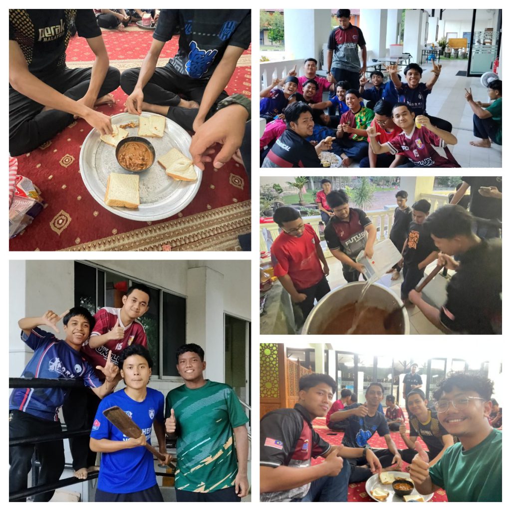 Aktiviti dimulakan dengan sesi mengaji bersama, diikuti dengan gotong-royong memasak kari ceker special, hasil kerjasama para belia dan ahli surau. Suasana ceria jelas terpancar sepanjang penyediaan jamuan apabila semua peserta memainkan peranan masing-masing dalam memastikan hidangan siap dengan sempurna. Selesai jamuan, para peserta meneruskan aktiviti ‘Tour Asrama’, iaitu edaran makanan kepada warga asrama sebagai tanda kebersamaan dan sokongan moral sempena minggu ulangkaji. Usaha ini bukan sahaja mengukuhkan ukhwah, malah memberi semangat baharu kepada rakan-rakan yang sedang membuat persiapan peperiksaan.